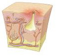 2. При этом продолжается выработка кожного жира сальными железами, который блокируется в поре, увеличивая ее и создавая припухлость на коже.